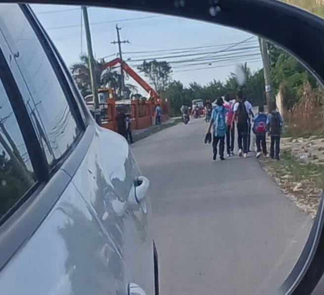 Como se puede apreciar en las fotos, los escolares y padres que transitan caminado para llegar o recoger al centro tomas el riesgo de ser atropellados por motores y autos que se desplazan por las vías.